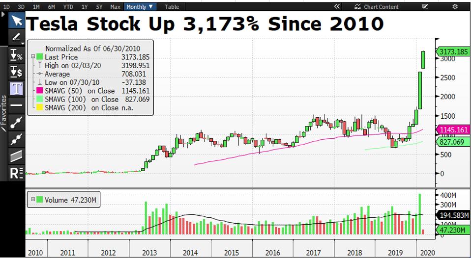 Tesla stock price forecast 2020. Analysts Divided on Teslas Investability. According to the Tesla stock analysis the share price reached 1795 on July 13 representing a hike of over 300 per cent from the start of 2020. Tesla stock is trading at 335 and 628 times analysts 2020 EPS forecast.